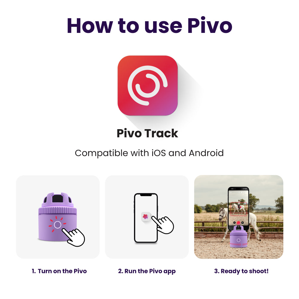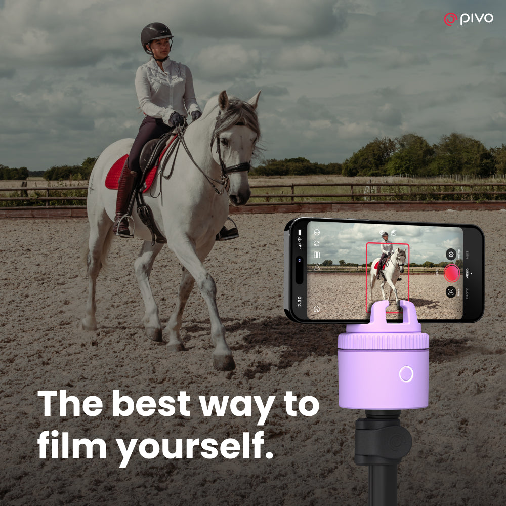 Pivo, your trusty Horse Tracking training partner! A pocket-sized device that follows you as you ride, with 360 AI Horse Tracking Technology. It converts your smartphone into an automatic, motion-tracking tool that lets you film your riding sessions hands-free. Watch back the footage instantly to review and analyze your performance. Create dynamic footage that you can share with your coach for feedback or inspire the world with
